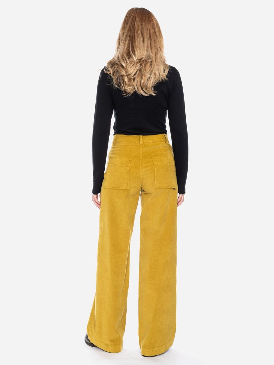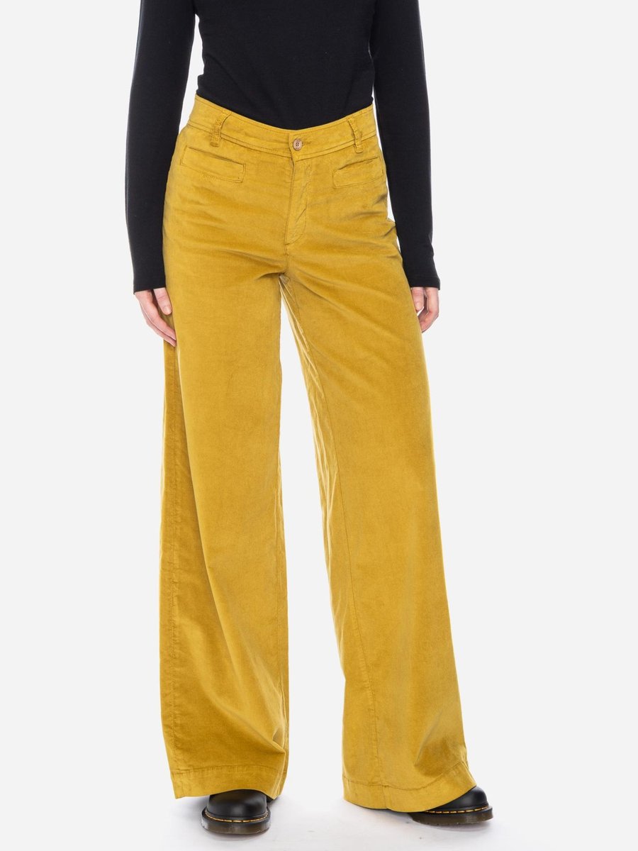 Weit fallende Stoffhose aus Samt mit hohem Bund.