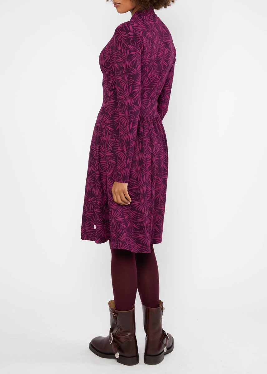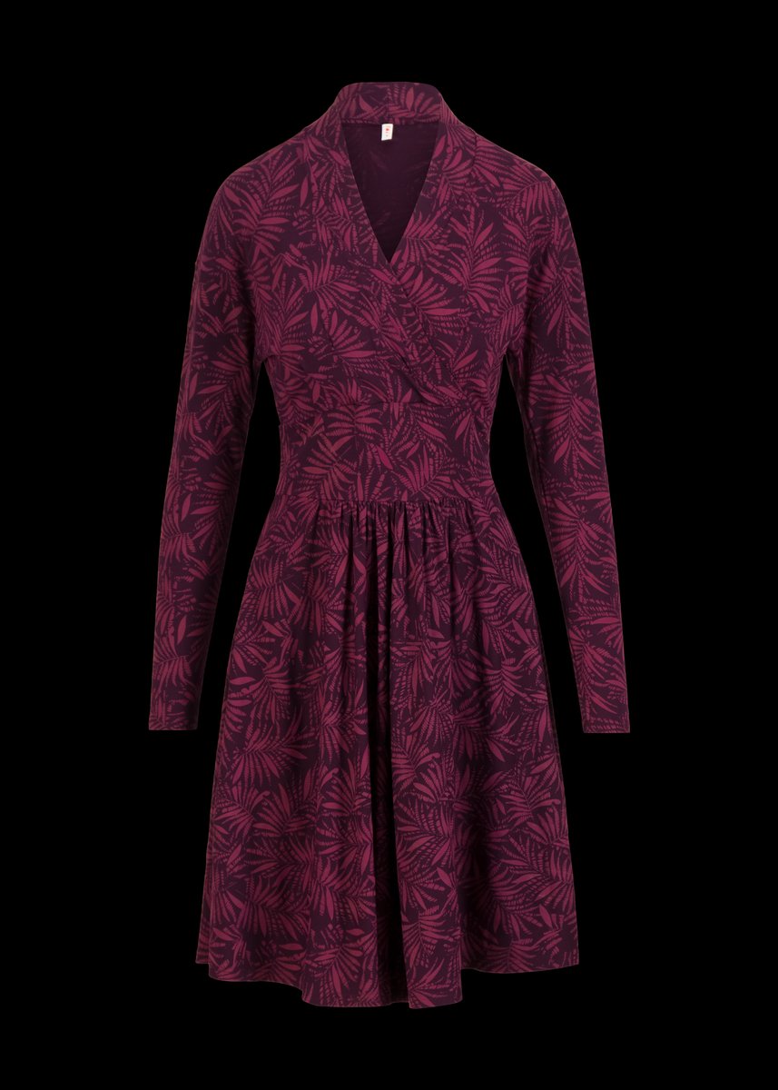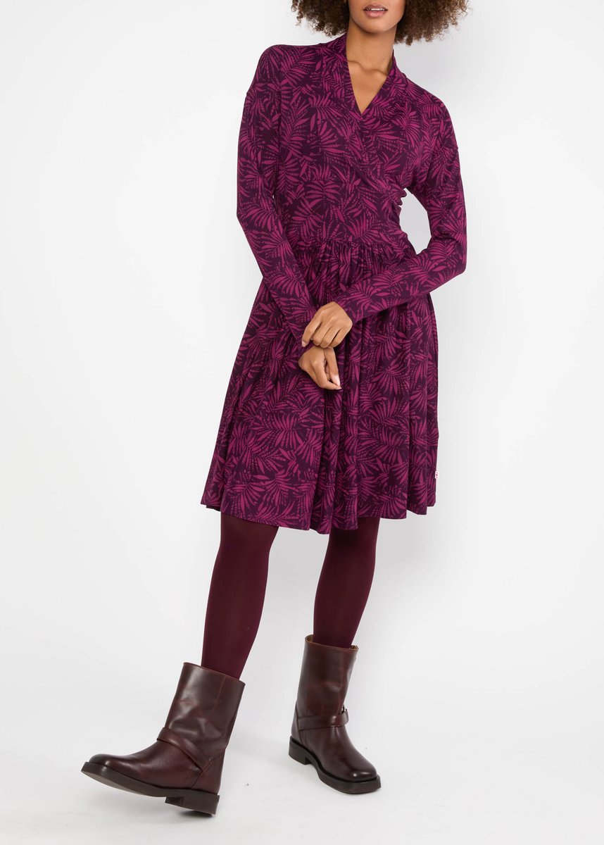 Knielanges Blutsgeschwister Kleid aus weichem Viskose-Jersey mit femininem V-Ausschnitt in Wickeloptik.