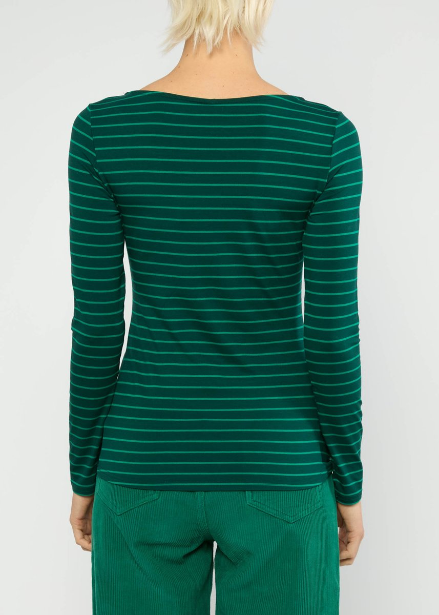 aus weichem Viskose-Jersey mit gemütlichem U-Boot-Ausschnitt mit feiner Blende. Leicht aufgelockerte Taille.\n