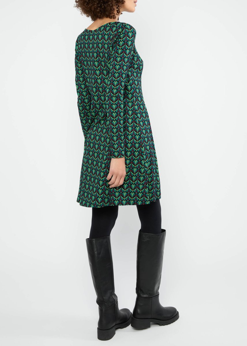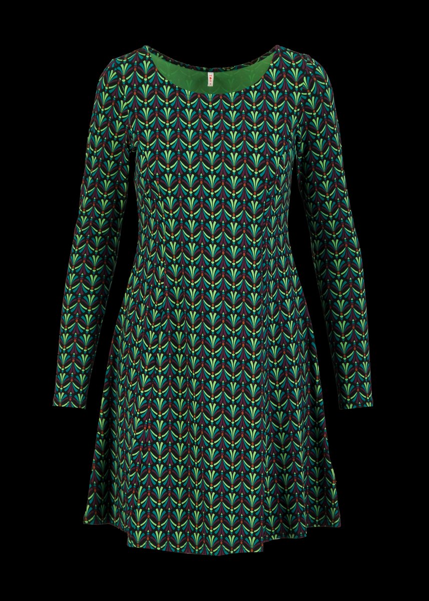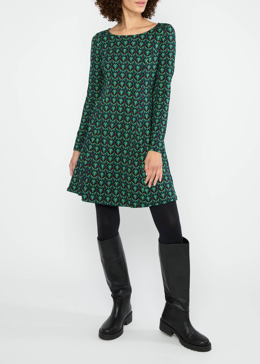 aus weichem Viskose-Jersey mit gemütlichem U-Boot-Ausschnitt mit feiner Blende. Leicht aufgelockerte Taille.\n