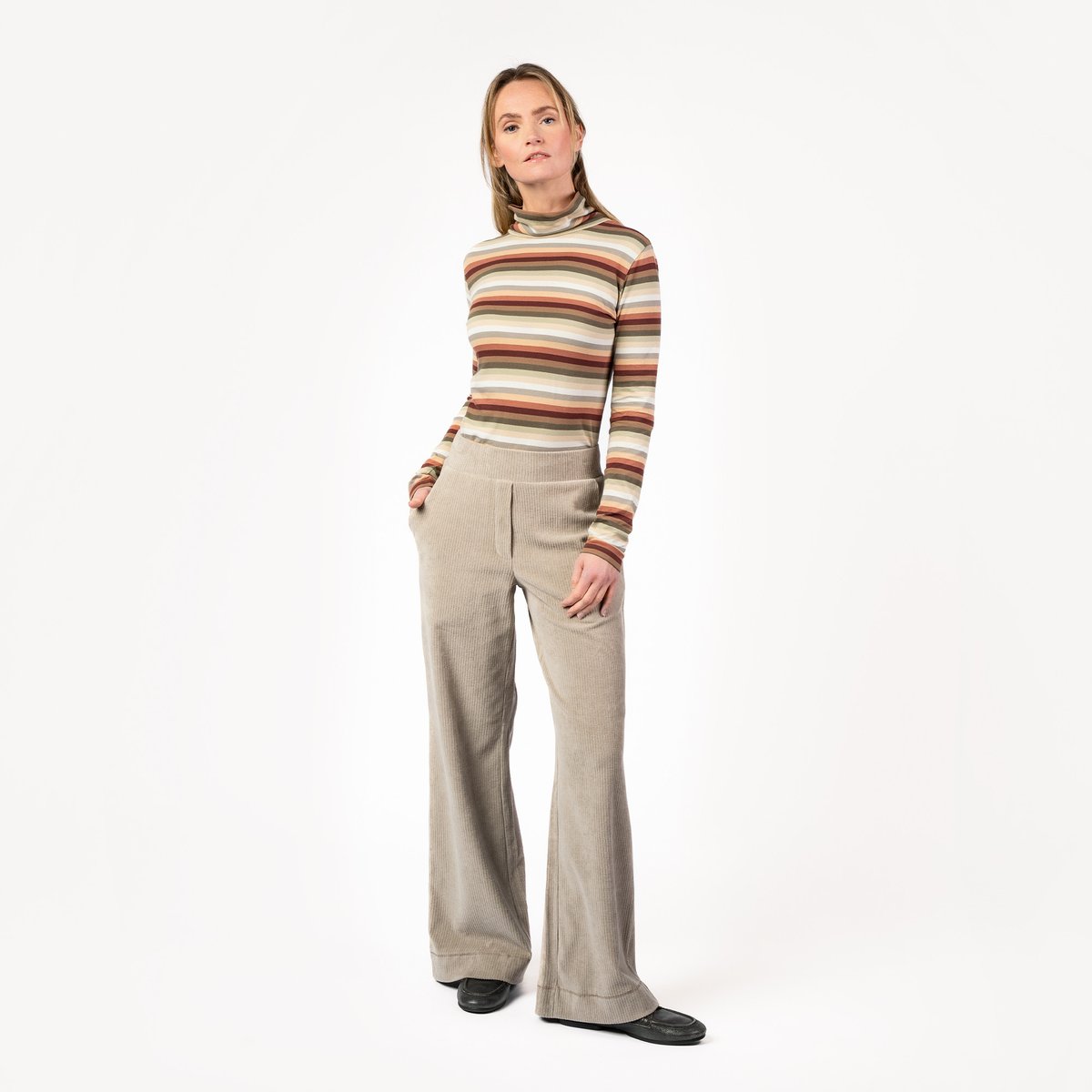 Superbequeme, tolle Hose in Breitcord-Struktur von Living Crafts. Die Schlupf-Hose fällt weich und geschmeidig und hat vorne zwei Eingrifftaschen.
