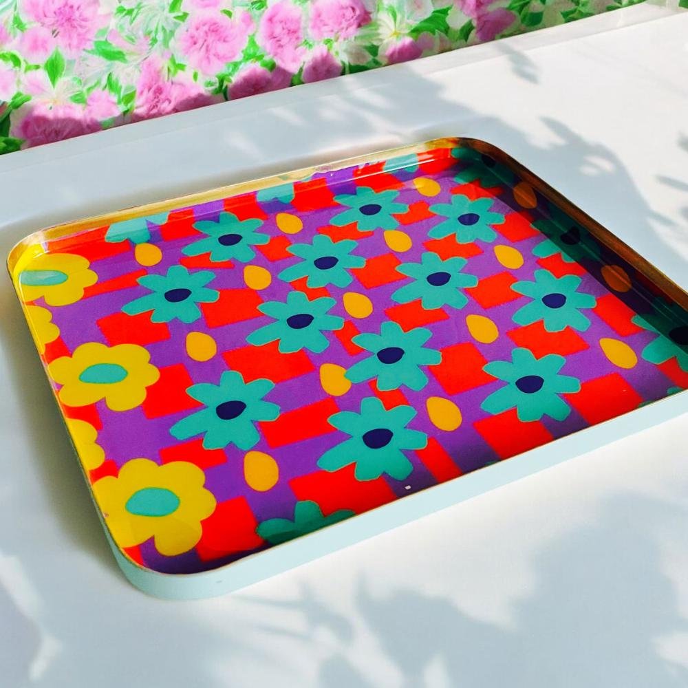 Das blumige Tablett soll eine heitere Stimmung verbreiten! Stell es als attraktive farbenfrohe Deko auf Deinen Tisch, oder serviere eine Kleinigkeit darauf- so wird es Dich und Deine Gäste erfreuen.