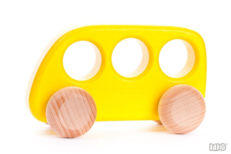 Der Bajo Bus in freundlichem Gelb ist ein wunderschönes Holzspielzeug aus Polen, das kleine Entdecker ab dem Greifling-Alter begeistert.
