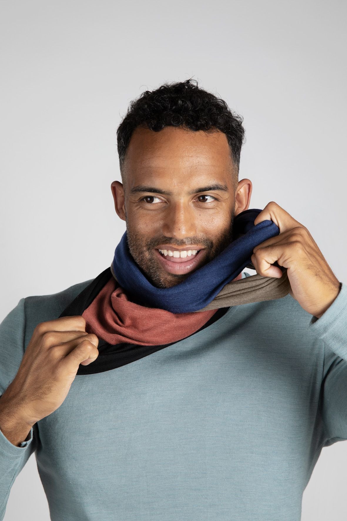 Praktischer und äußerst angenehm zu tragender Schlauchschal aus 70% Wolle (kbT) und 30% Seide.