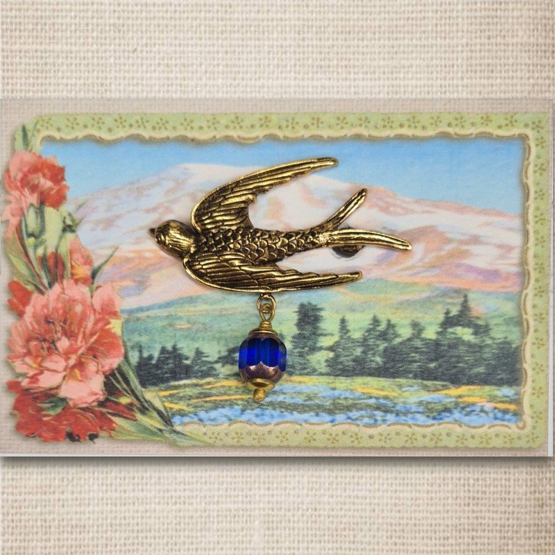 Urban Hippies Bird Brosche, Gold/Kobalt